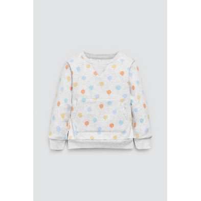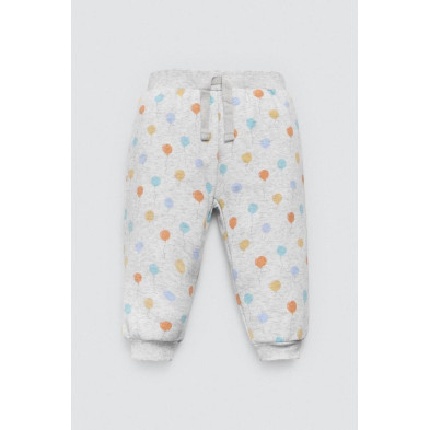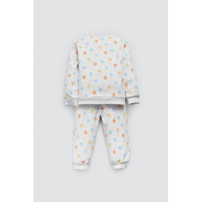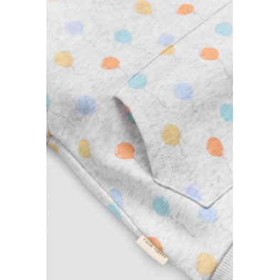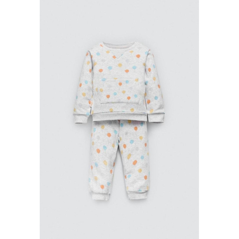 Conjunto para bebé estilo chándal con estampado de globos. Modelo de manga larga con bolsillo en la parte delantera de la sudadera y con pantalones de cinturilla ajustable.