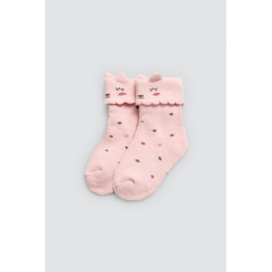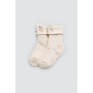 Pack de 2 calcetines térmicos estampados para bebé con puño antipresión. Este modelo tiene detalles con volumen.