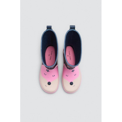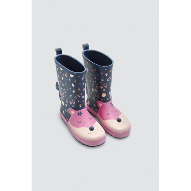 Botas de agua para niña con diseño de zorro. Poseen forro interior, plantilla extraible y están hechas con un material engomado resistente