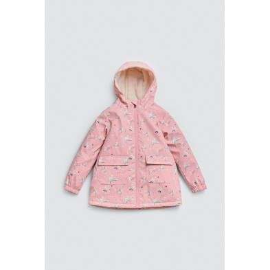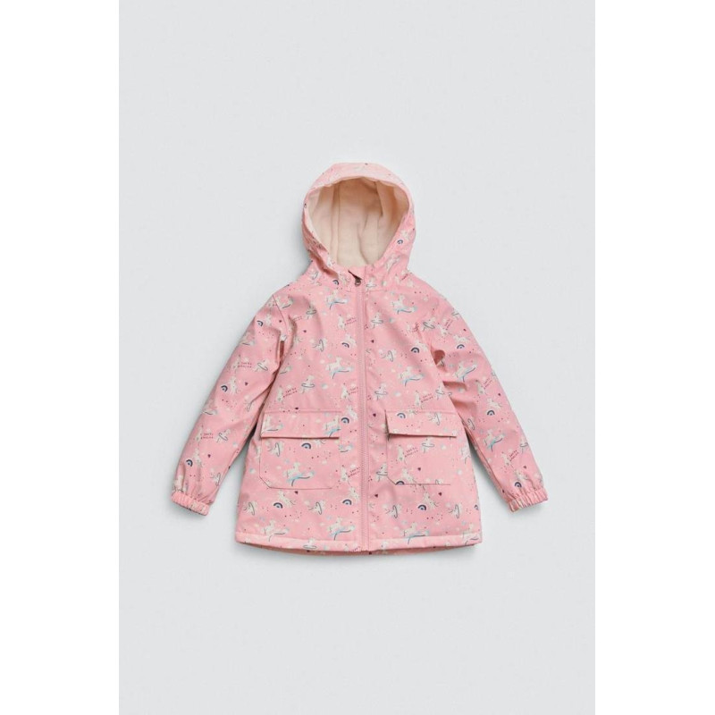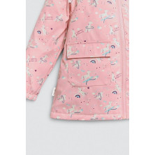 Chubasquero infantil con interior afelpado y estampado de unicornios.