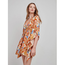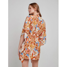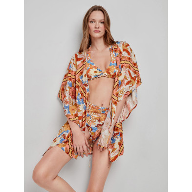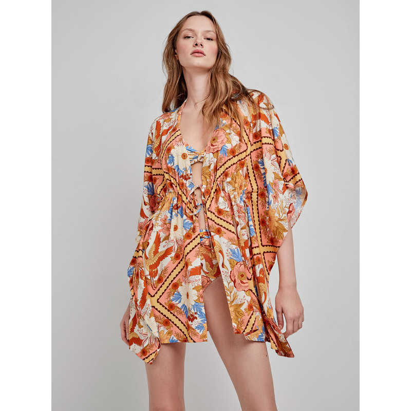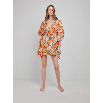 Caftán en tejido estampado y ajustable en cintura con cordón. Combínalo con sus bikinis y bañadores a juego.