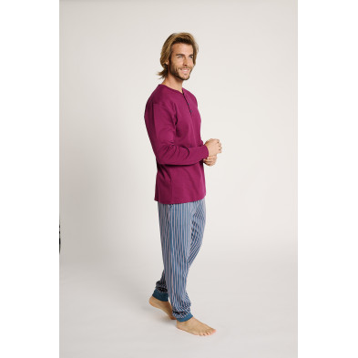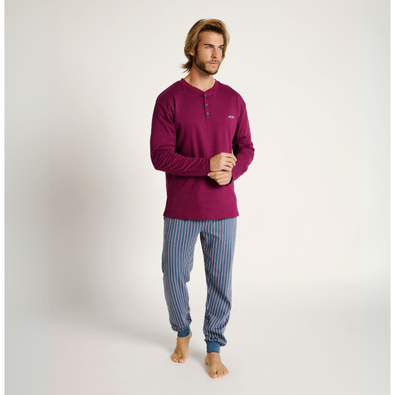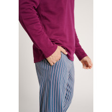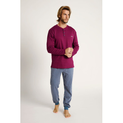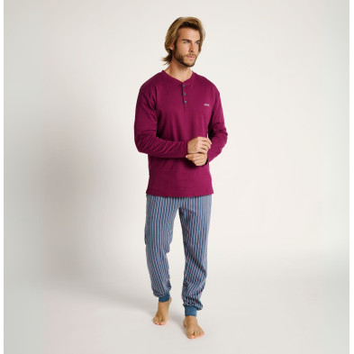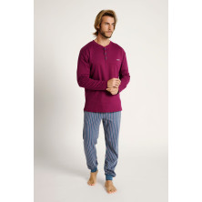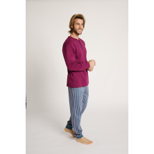 Pijama invierno hombre Muydemi granate pantalón rayas