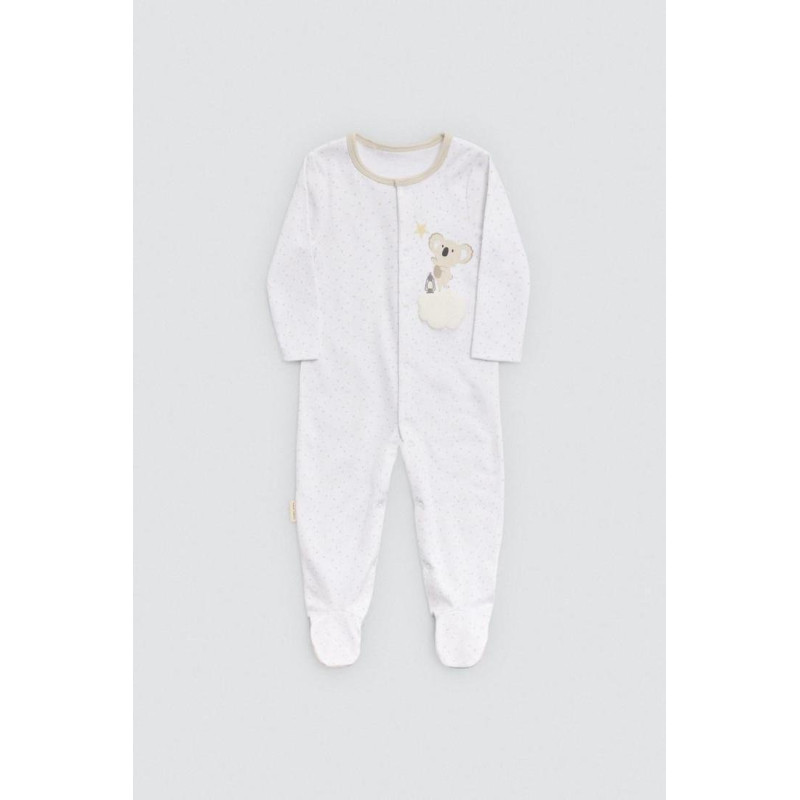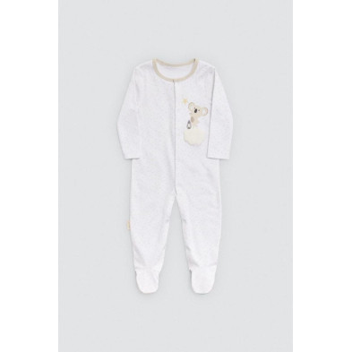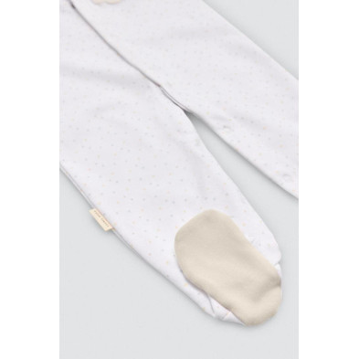 Pelele de bebé de algodón natural con manga larga y interior afelpado. Cuenta con silicona antideslizante en los pies.