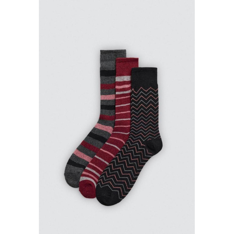 Pack de 3 calcetines estampados de lana para mujer. Este modelo cuenta con un puño antipresión y un tacto extrasuave.