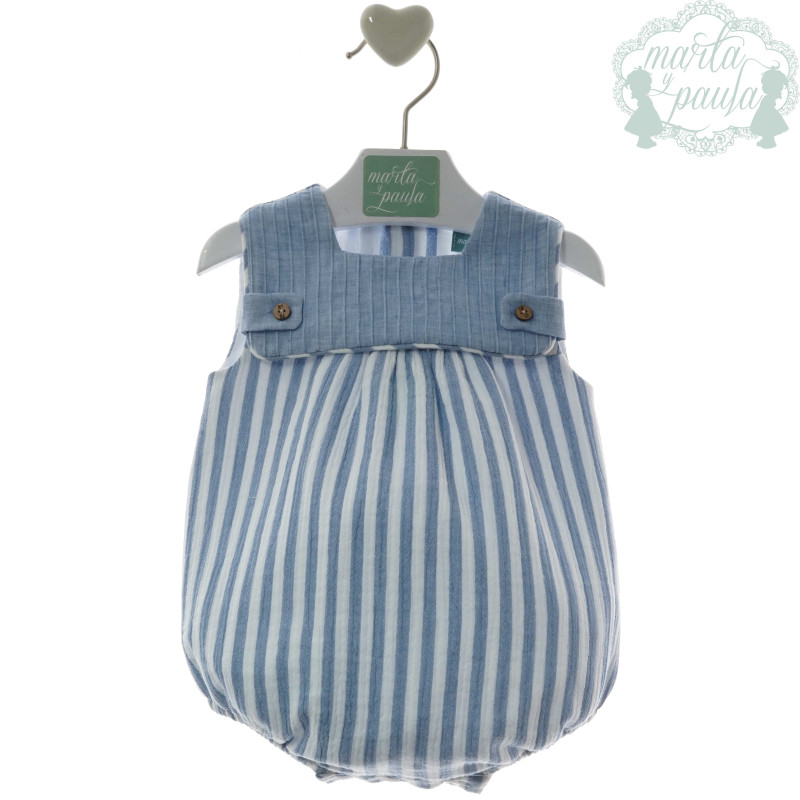 Bombachoen tejido rayas, con el pecherin en nido abeja , botones en espalda y forro interior.