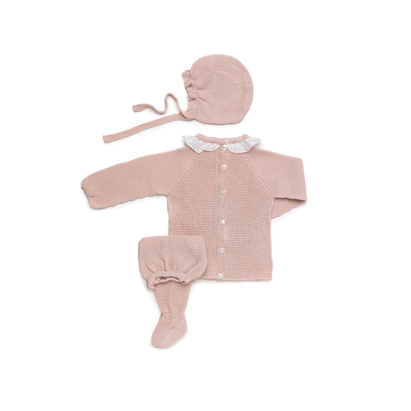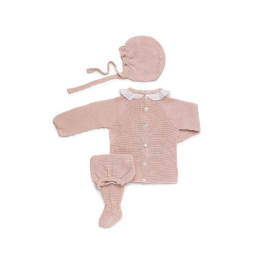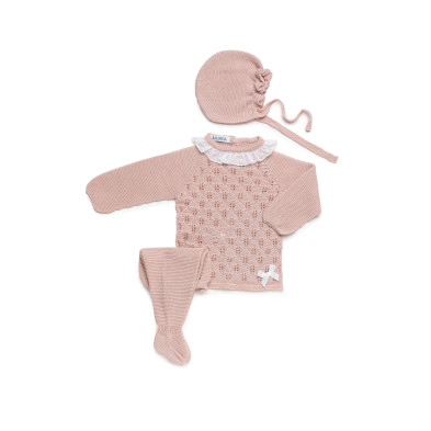 Conjunto bebé 3 piezas lines calado rosa palo Juliana