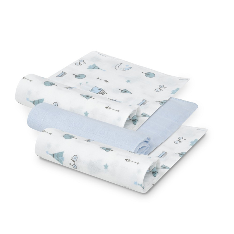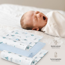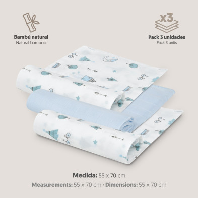 Gasas bebé bambú 55x70 mod. moon pack 3 Interbaby azul