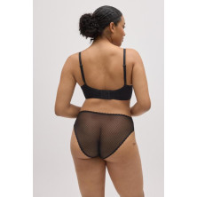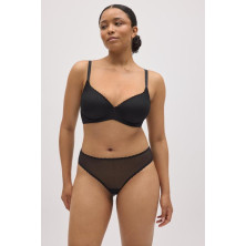 Conjunto de sujetador y braga midi con transparencias. Sujetador de gran capacidad con aro y con relleno.